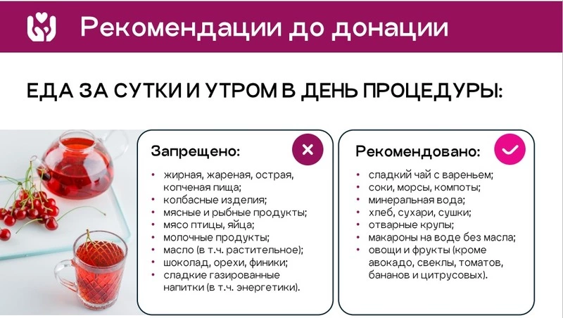 Медики напоминают, что стать донором может любой здоровый человек старше 18 лет и весом не менее 50 кг. За сутки перед донацией рекомендуют придерживаться специальной диеты, а после процедуры уделить внимание восстановлению организма.
